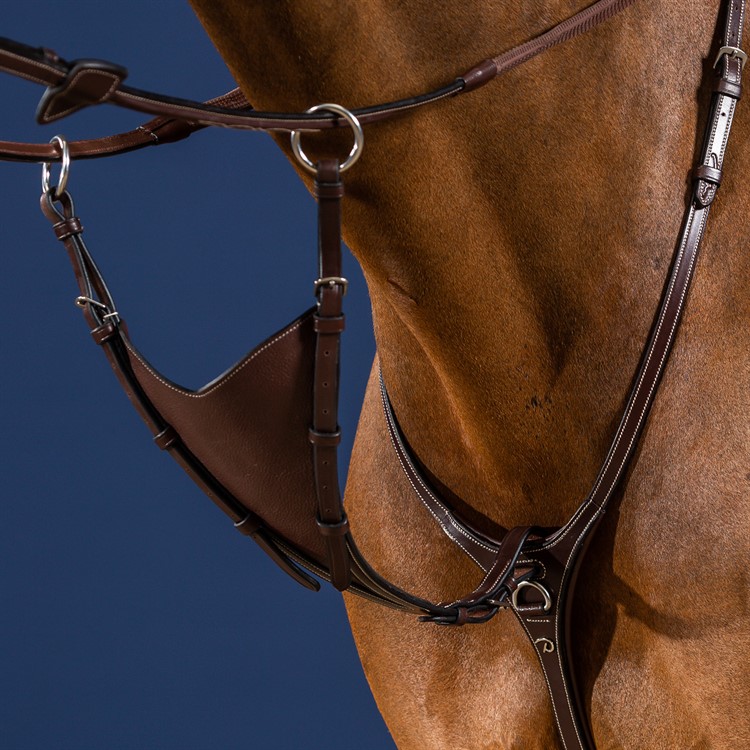 Denna martingal fästes enkelt fast på brösta eller förbygel med en justerbar läderrem.