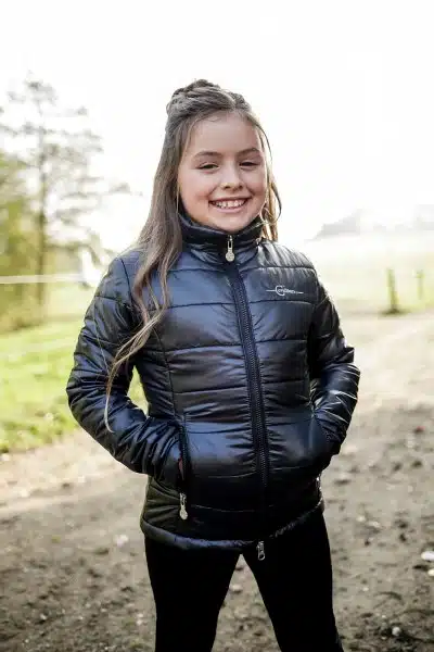 Quiltad jacka till junior från Covalliero. Lätt fodrad lättviktsjacka med blank utsida. Fungerar lika bra i stallmiljö som till privat.